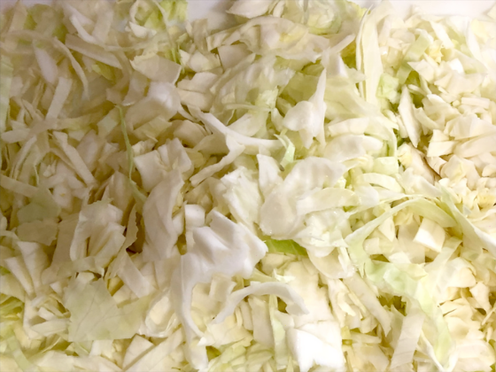 キャベツを千切りにする。