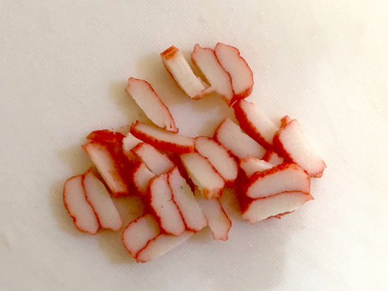 ・カニカマをたべやすい大きさに切っておく。