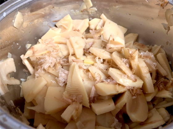 春の旬の食材『たけのこ』を使った、たけのことかつお節の煮込み🌟味はお好みで調整してみてくださいね(^з^)-☆