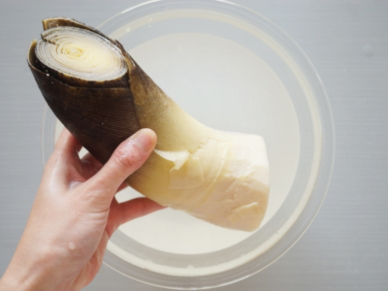 皮を剥いた、たけのこの保存期間の目安は4~5日間(冷蔵保存で)。まずは、保存容器に入れてたけのこが被る量の水を注ぎ、保存容器の蓋をして冷蔵庫で保存しましょう。毎日水を変えれば、約1週間保存できますよ✨