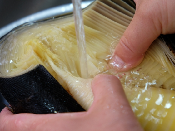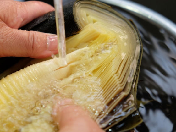 たけのこをよく洗う