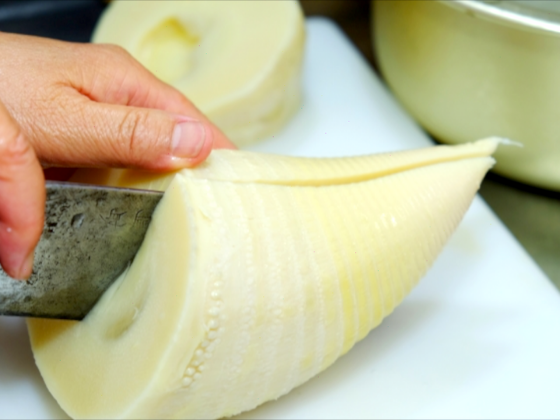 たけのこの先端を、斜めに切り落としておきましょう!切り落とす長さの目安は、全長の1/5くらいを目安にしてみてくださいね🌟