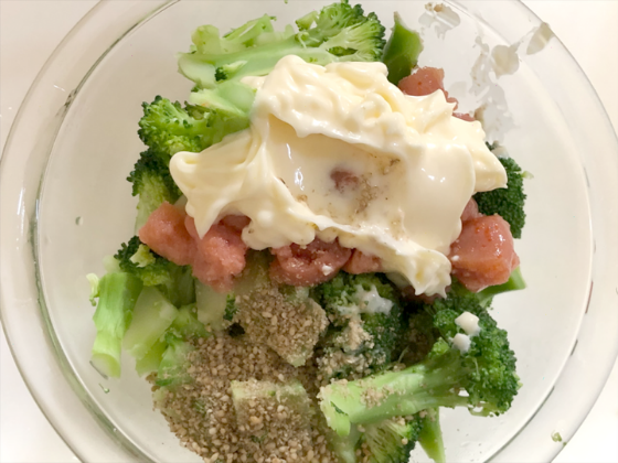 ① ボウルに下ごしらえしたブロッコリーと辛子明太子、サラダ調味料を加えて混ぜ合わせれば完成です!