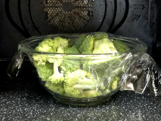 ・耐熱容器にブロッコリーを入れラップをかけてレンジ600w3分加熱させる。