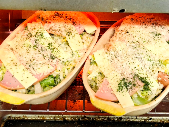 ⑥ オーブントースターで約7分ほど焼き上げ、ほんのり焦げ目がついたら完成です!
