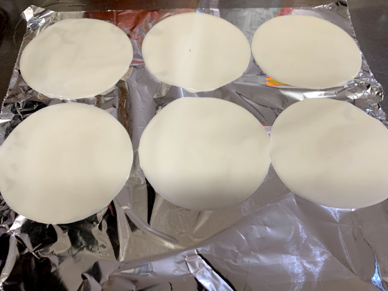 ◇アルミホイルはくしゃくしゃにしてギョーザ皮を乗せてください!(完成後、ギョーザ皮とアルミホイルが引っ付かない為)