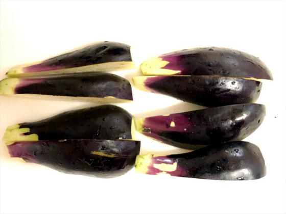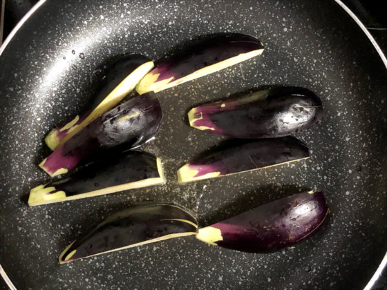 ・なすを4等分に切り分ける。