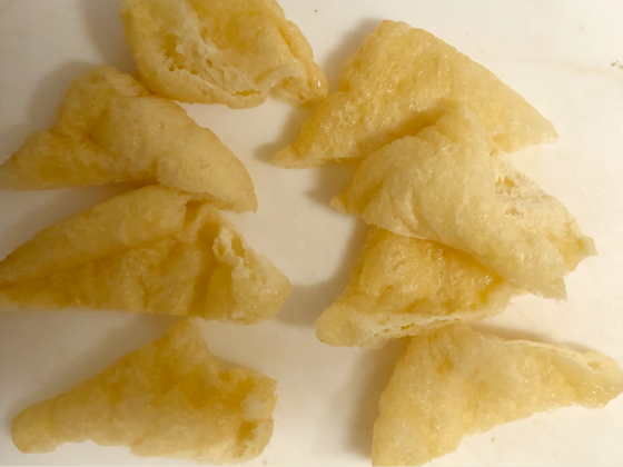 ・油揚げは食べやすい大きさに(斜めに2等分)。