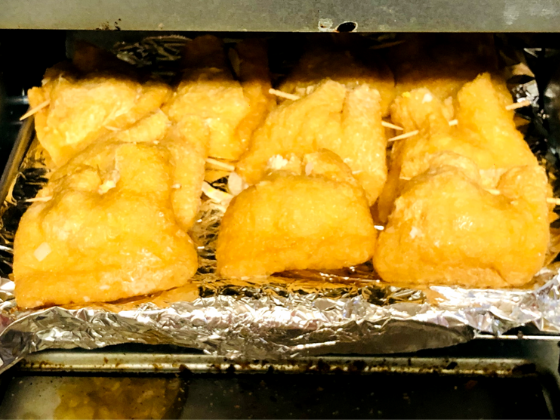 ④ オーブントースターで5分〜8分ほど焼き上げる。