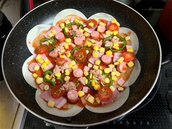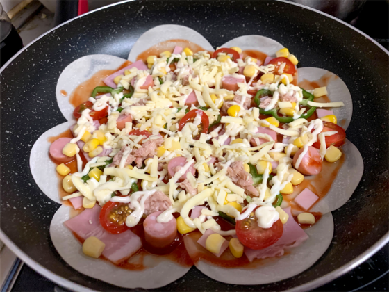 フライパンで作る!餃子の皮ピザ