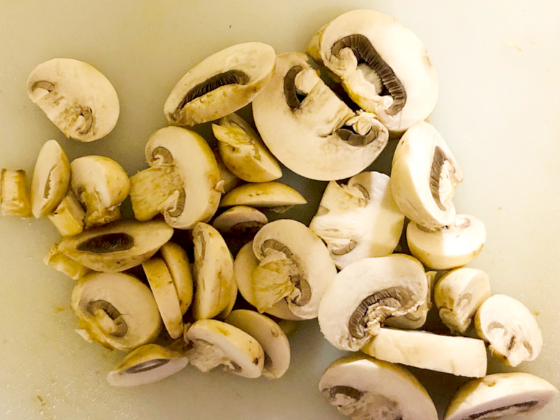 ・マッシュルームは石づきを落として半分(食べやすい大きさ)に切ります。