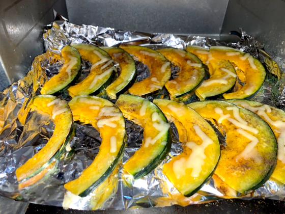 かぼちゃスライスで作るかぼちゃのチーズ焼き🎃トースターで作るので簡単にできちゃうレシピです!!