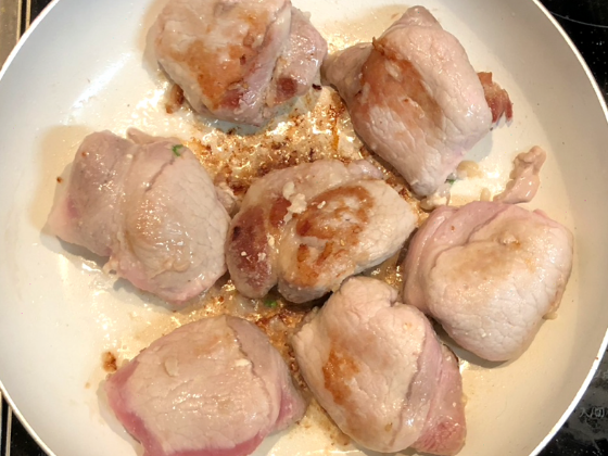 ③ ②に肉巻き調味料を加えて全体に味を絡み合わせて煮詰めていく(弱火で約15分ほど)。