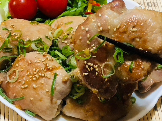 ⑤ お皿にごまとネギを盛り付けたら完成です。
