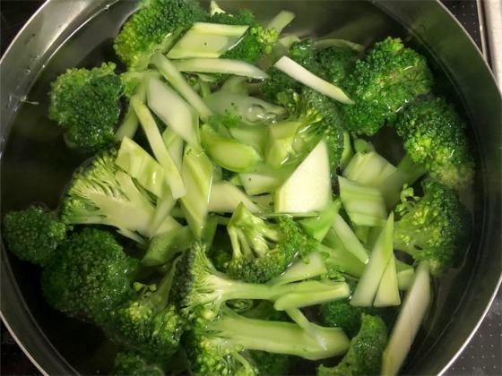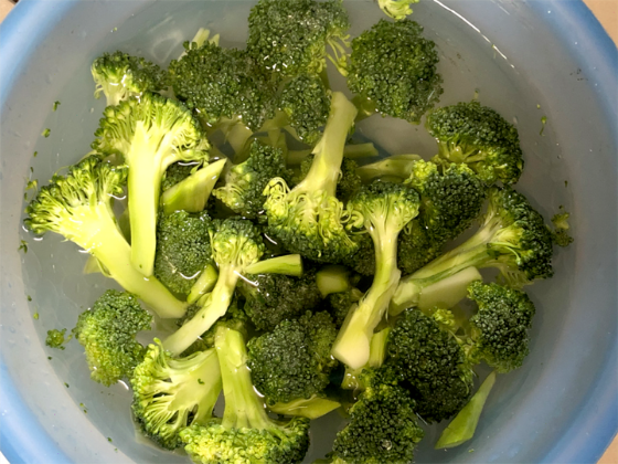 切った、ブロッコリー🥦は水の中でしっかりと洗いましょう!緑のつぼみ部分に汚れが残りやすいのでよ〜く洗うことを忘れずに☆