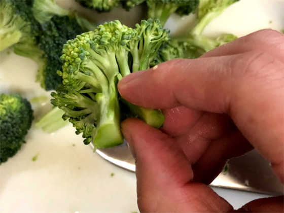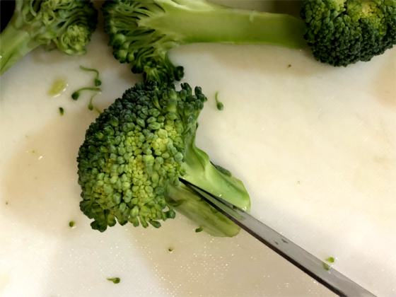 ブロッコリーは小房ごとに切り落としましょう!切りやすい下から順に、できるだけ小房に付いてくる茎を長く残すように切って下さいね。