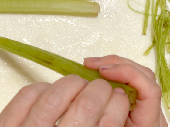 ふきの皮を剥いていく