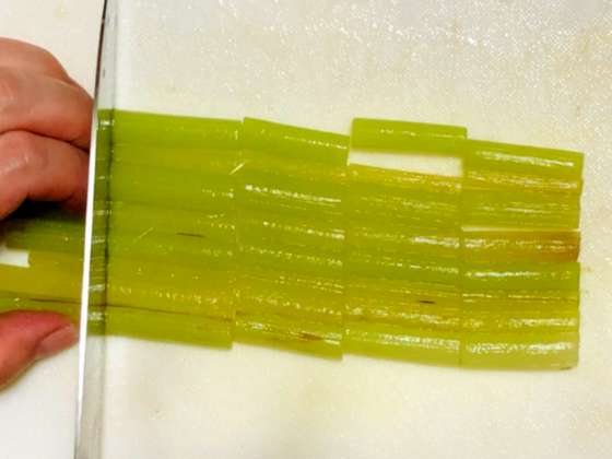 こういったことを頭に入れながら広い口径にふきの長さを合わせて、すっぽり入るように包丁でカットしていきましょう。