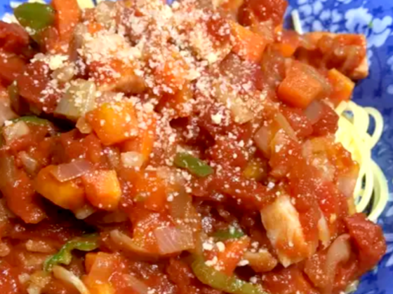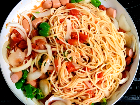 ④ 味が全体的に絡み合ったら完成です!お好みで、トマトソースをパスタの上からかけても美味しく召し上がれますよ🍀お好みで調整してみて下さいね!