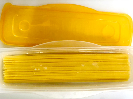 ・パスタを茹でる(鍋の場合中火で5~6分・容器レンジで600w3分)