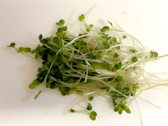 ・かいわれの根本を切っておく。