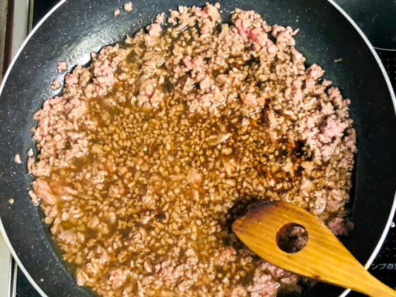 ② よく炒めたらレシピ:簡単絶品!万能タレて煮詰める(弱火で約10分ほど)。