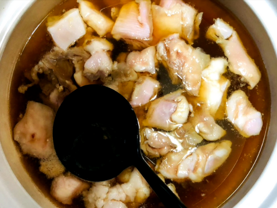 ② 火が通るとアクが出てくるので適当にすくいアクが出なくなったら火を止める。
