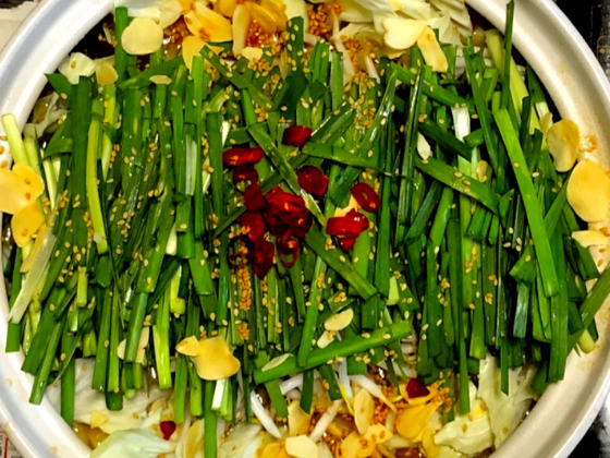 たっぷりのもつ、キャベツ、ニラで美味しく大満足になれるレシピです✌️もつは、牛と豚のミックスで🐷🐮