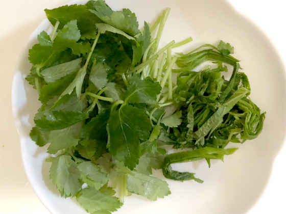 ・大葉を刻み、三つ葉は3cm幅に切っておく。