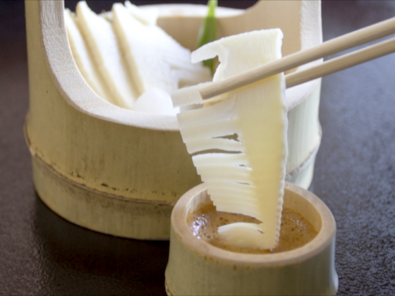 【春野海先生コメント】 春の旬の食材『たけのこ』を使った、たけのこ刺身🌟たけのこの刺身は幻と言われるほどレアな食べ方(^з^)-☆ 時間が経つと食べられないので掘り出してから3時間程度で調理できる方は