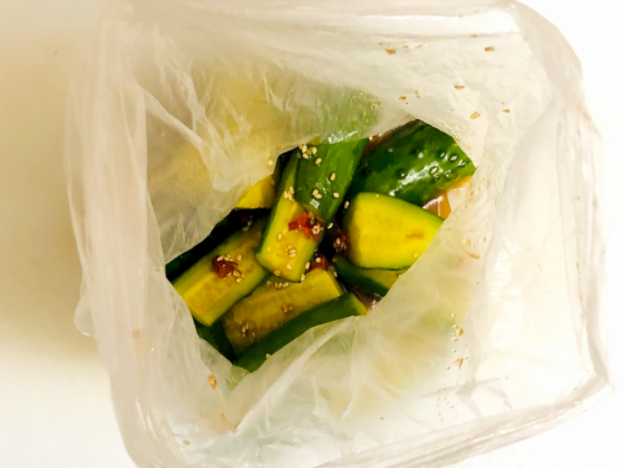① ビニール袋に下ごしらえしたきゅうりと生姜漬け調味料を入れ軽く揉み込み、冷蔵庫に1時位冷やしたら完成です。