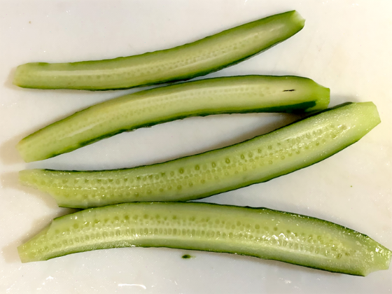もし、きゅうりの表面のイボが気になるようなら大きなものを包丁でへぎ取るとよいですよ!