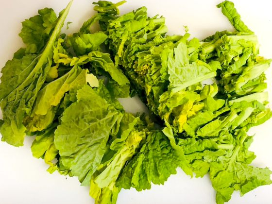 ・下処理した菜の花を食べやすい大きさに切り分けておく。
