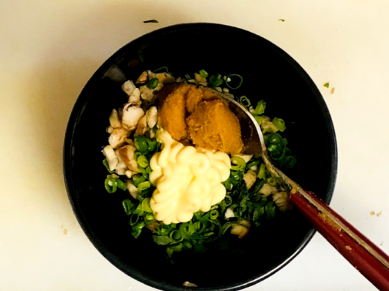 ① ボールに②を入れて、お味噌・マヨネーズを加えて混ぜる。