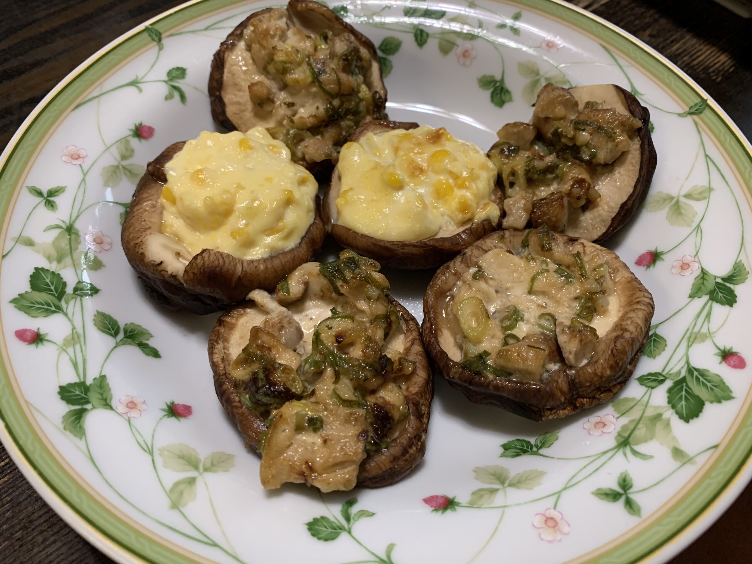 しいたけのギュウギュウ詰、コーンマヨで後、一品してみました〜