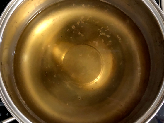 ① お鍋に水、めんつゆ、白だし、顆粒だしの素を入れ火にかける。