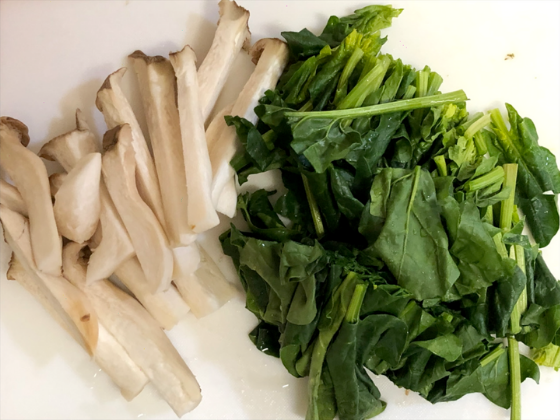 ・ほうれん草とエリンギはたべやすい大きさに切っておく。