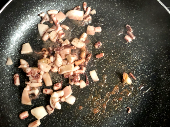 ① フライパンにバターを入れて、下ごしらえしたイカを加える(火は中火で)。